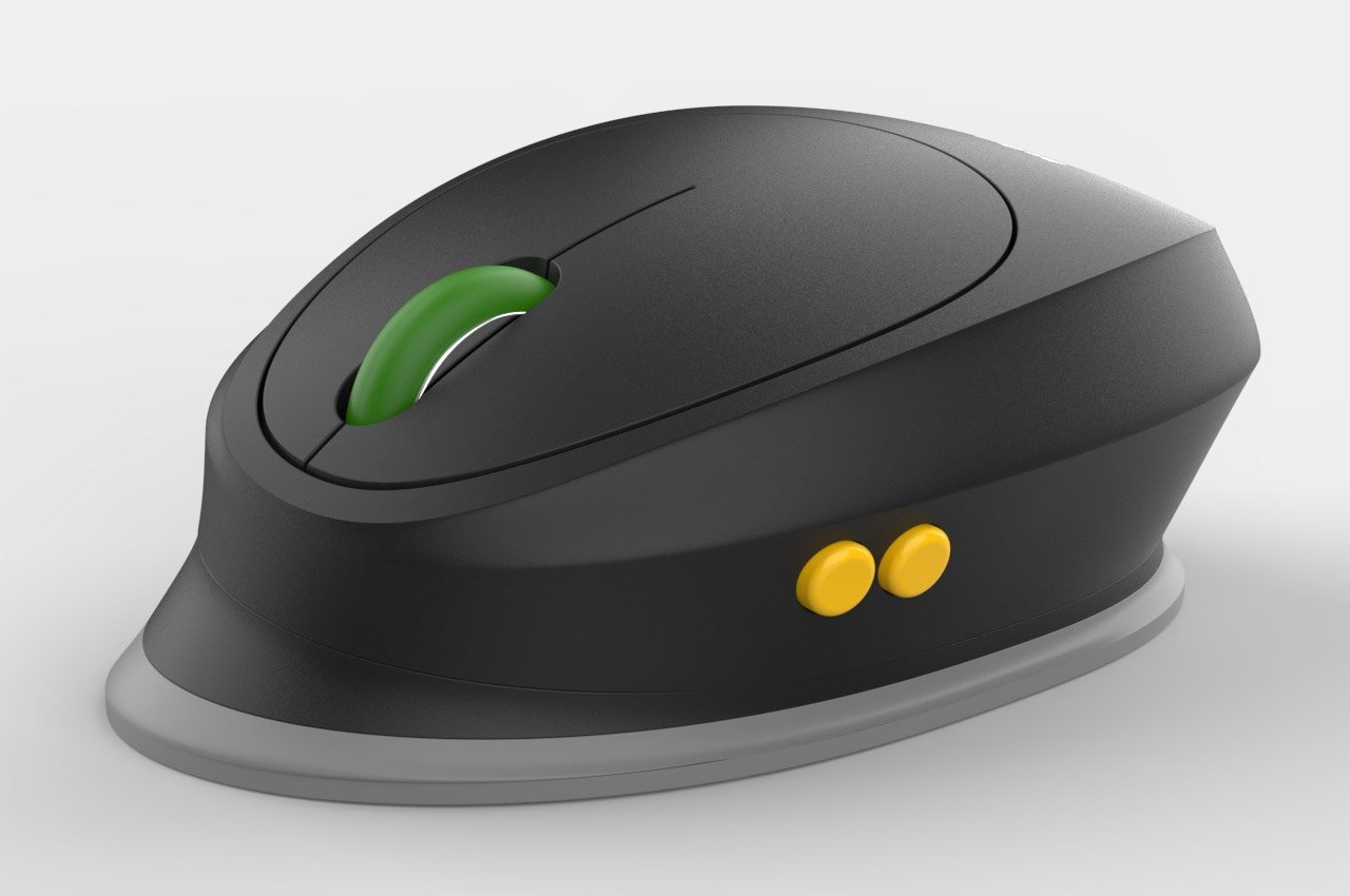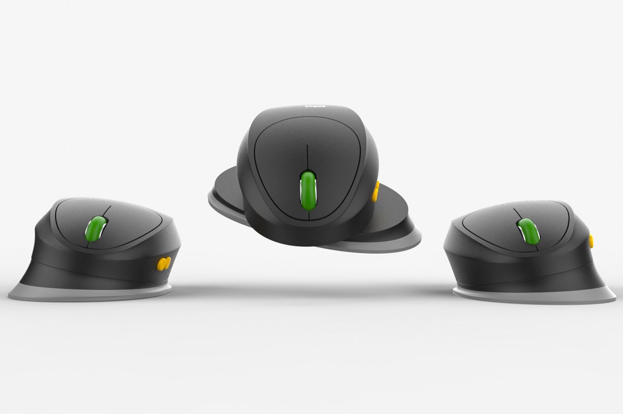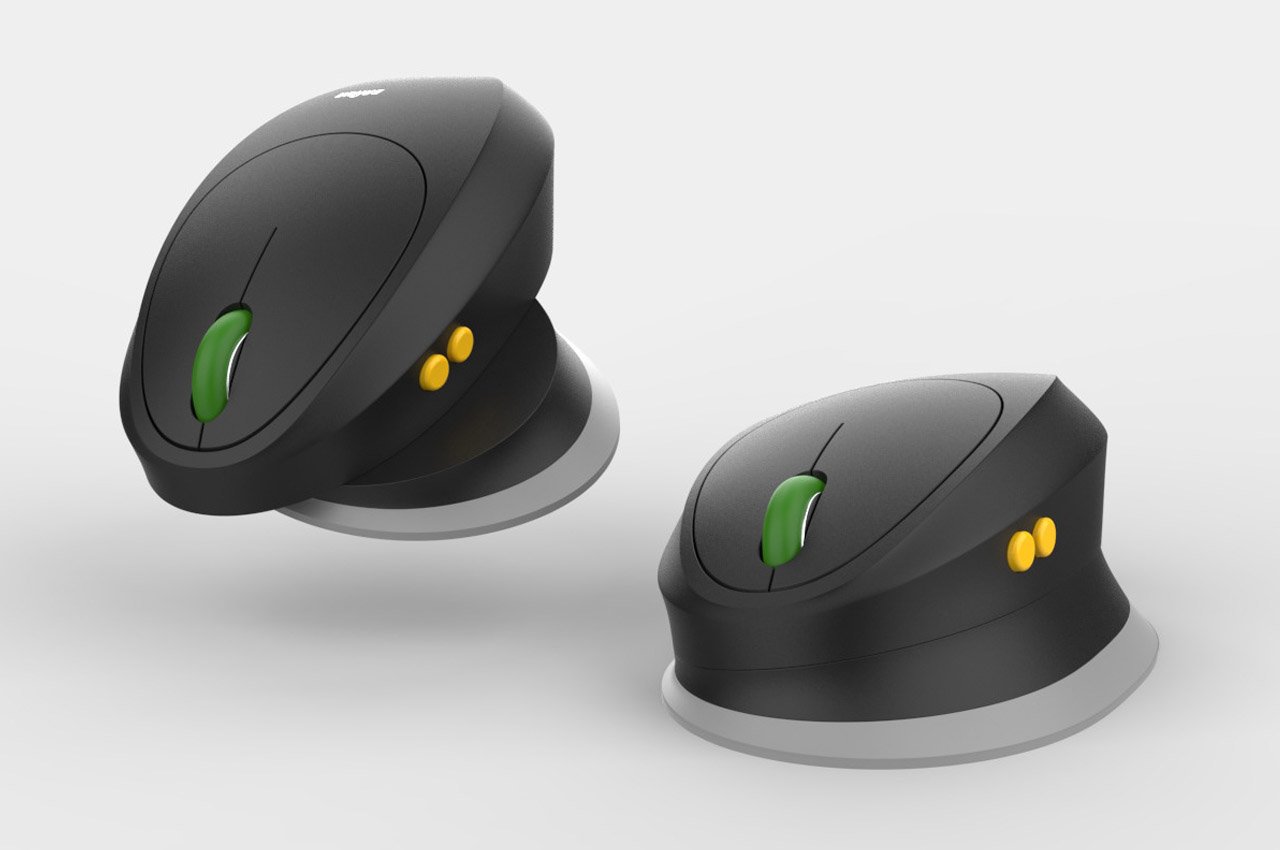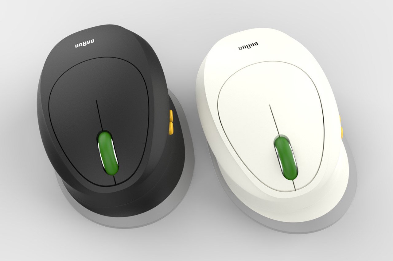 Mysz Braun obraca się na pochylonej podstawie, co zapewnia ergonomiczne użytkowanie dla osób prawo- lub leworęcznych