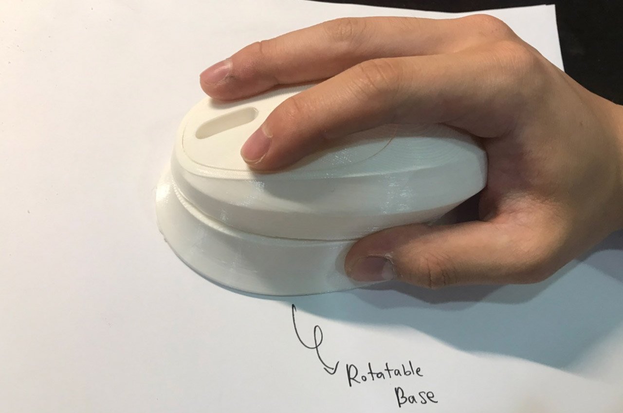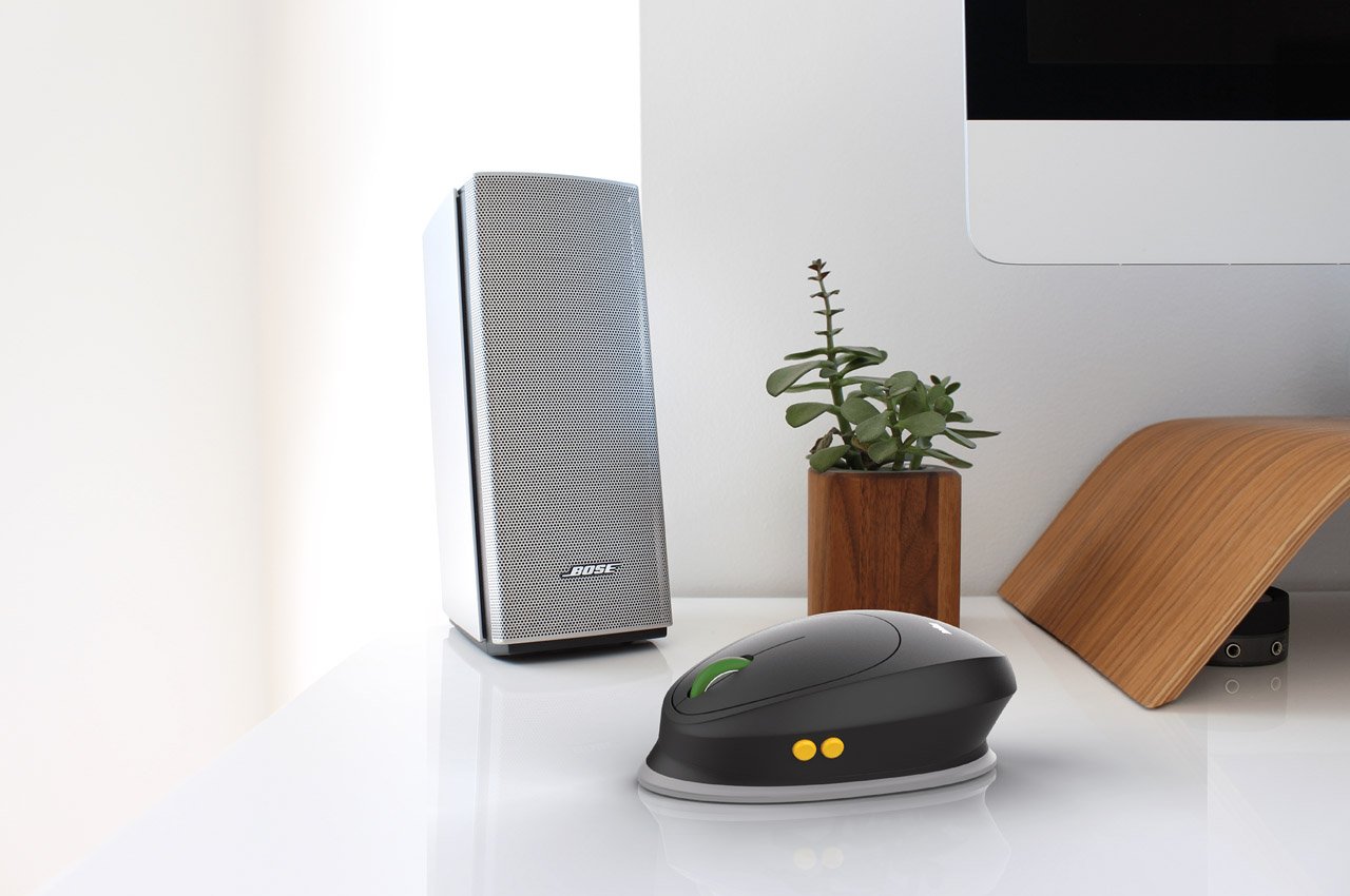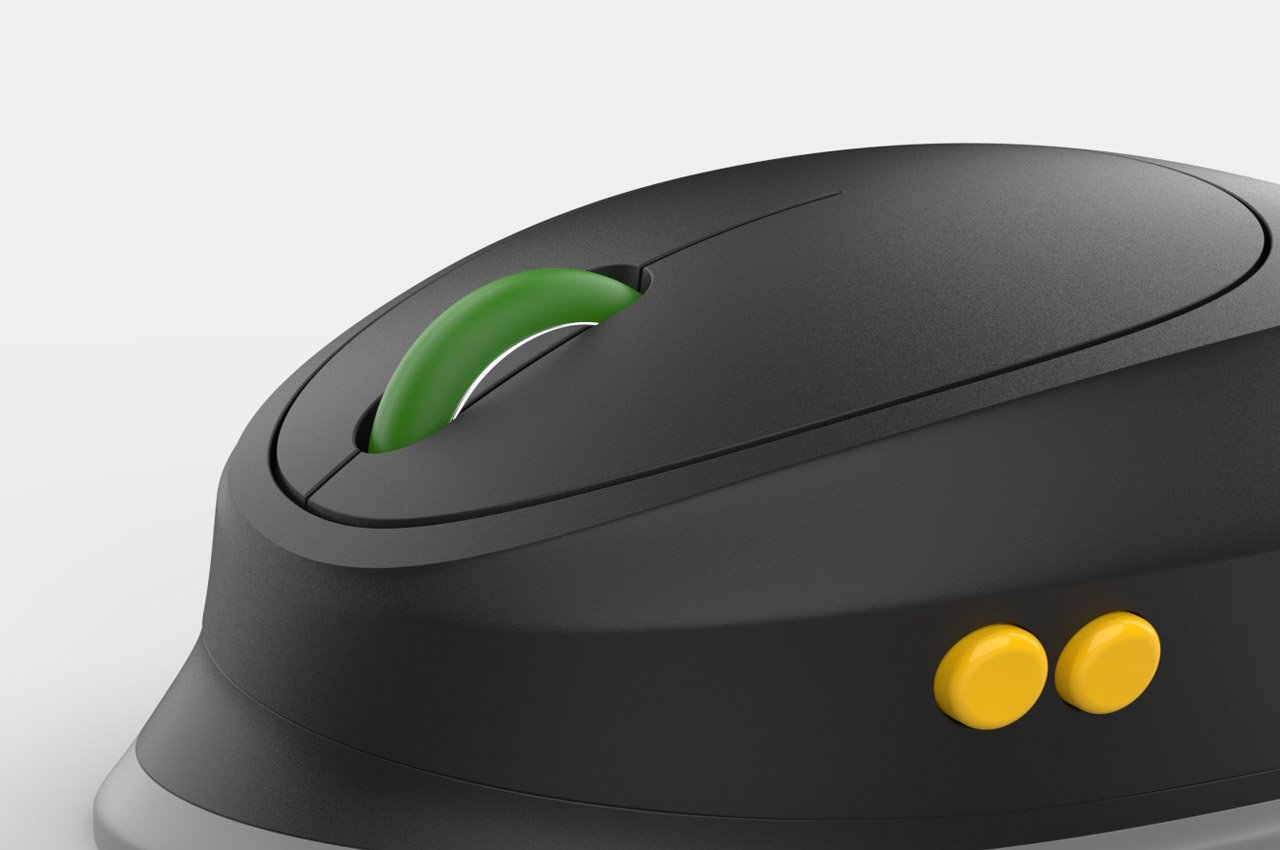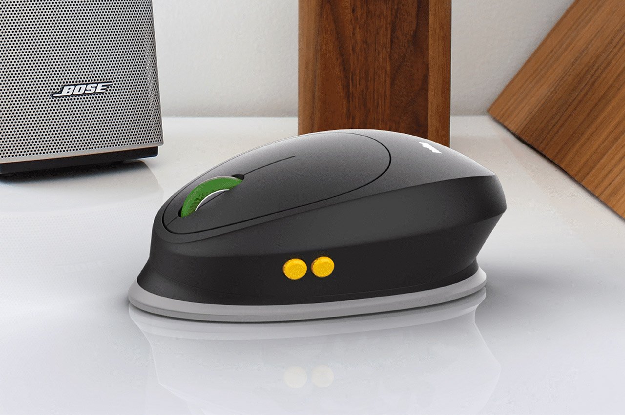 Mysz Braun obraca się na pochylonej podstawie, co zapewnia ergonomiczne użytkowanie dla osób prawo- lub leworęcznych