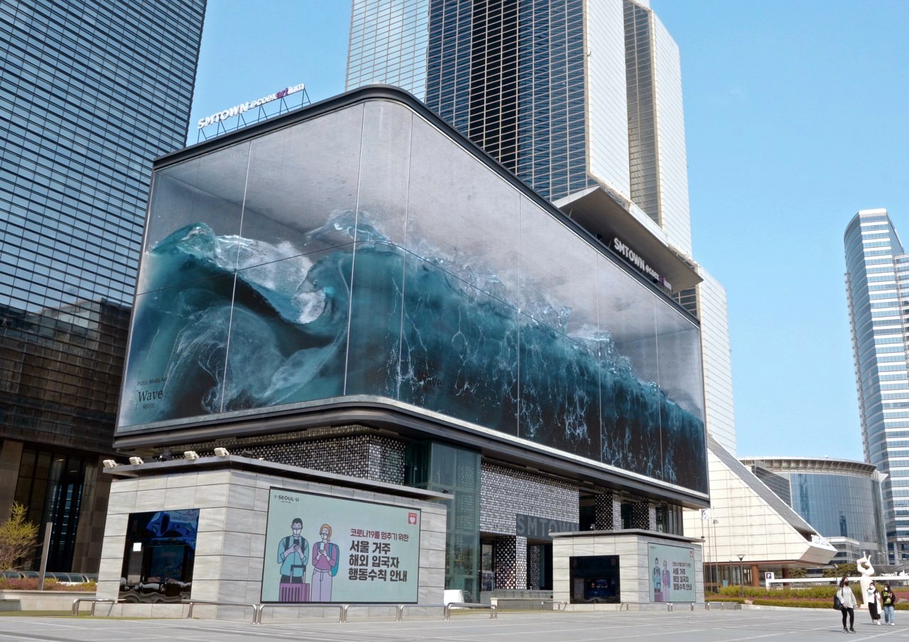 Jeśli spędziłeś trochę czasu w mediach społecznościowych, prawdopodobnie widziałeś filmy z tym budynkiem gdzieś w Internecie. Zlokalizowana w Gangnam w sercu Seulu, „WAVE” to dzieło mediów publicznych, które realistycznie przedstawia konsekwentnie rozbijające się fale dzięki technice iluzji anamorficznej na gigantycznym wyświetlaczu LED w kształcie litery L. Jasne, możesz użyć wyświetlacza do wyświetlania reklam, tak jak na Times Square, ale śmiało powiedz mi, że wolisz patrzeć na billboardy niż na anamorficzne dzieło sztuki VR!