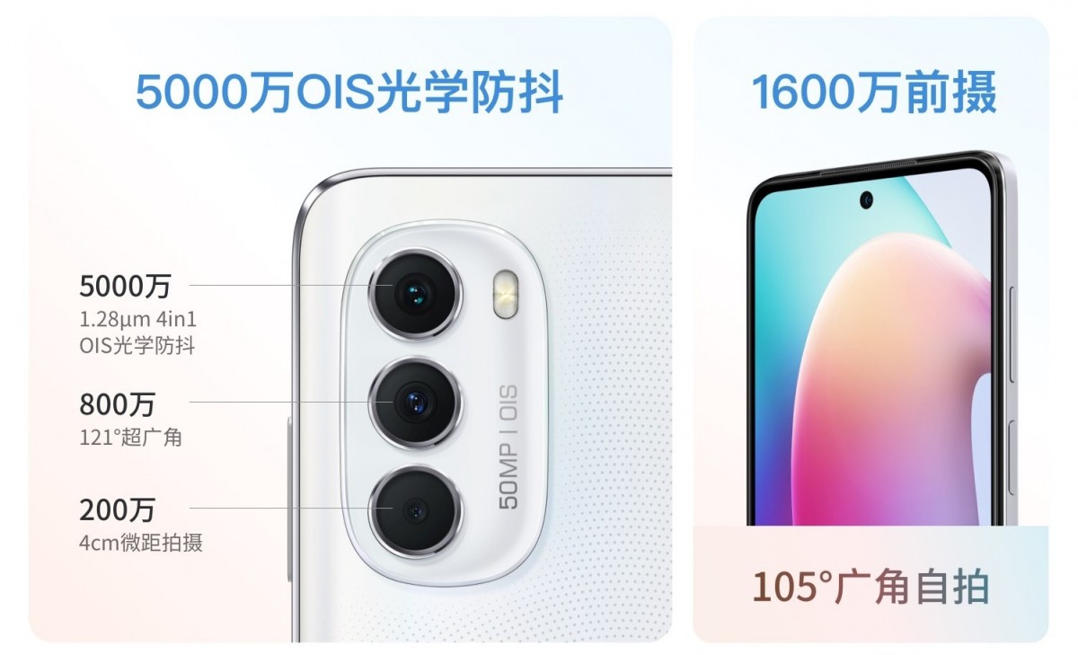 Kamery z tyłu są takie same, zaczynając od modułu głównego 50 MP, który może pochwalić się OIS i czujnikiem z pikselami 4-w-1 (dla pikseli 1,28 um). Obok znajduje się ultraszerokokątny aparat 8 MP (121 stopni) i kamera makro 2 MP. Aparat do selfie 16 MP z przodu ma imponująco szeroki obiektyw 105 stopni. Motorola postrzega to jako telefon do vlogowania, dzięki czemu może nagrywać filmy za pomocą przedniego i tylnego aparatu.