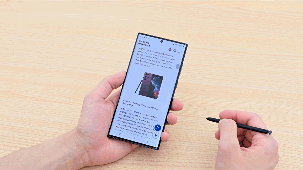 Przeglądając internet, często natrafia się na idealną treść, która zainspiruje nas do pracy. Używając rysika S Pen, możesz łatwo wybierać, przycinać i chwytać to, co wzbudza Twoje zainteresowanie, niezależnie od tego, czy jest to zdjęcie, czy cytat. Funkcja Smart Select umożliwia narysowanie kształtu w dowolnym miejscu na ekranie, a telefon przechwyci tylko zdefiniowany wybór. Możesz zapisać zrzut ekranu jako obraz lub wkleić go od razu w aplikacji Samsung Notes. Niezależnie od rozmiaru lub kształtu treści, możesz ją idealnie umieścić na stronie w notatkach, nawet jeśli jest już wypełniona tekstem.