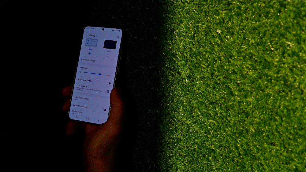 Niezależnie od tego, czy pracujesz w pomieszczeniu, czy na zewnątrz, możesz mieć pewność, że ekran jest zawsze czytelny dzięki funkcji Adaptive Brightness serii Galaxy S22. Gdy tylko urządzenie się włączy, ekran automatycznie dostosuje się do oświetlenia pomieszczenia. Możesz cieszyć się wyraźnym, jasnym ekranem w dowolnym miejscu bez konieczności regulacji, bez względu na to, czy czytasz dokumenty w słabo oświetlonej sali konferencyjnej, czy sprawdzasz pocztę e-mail w pełnym słońcu.