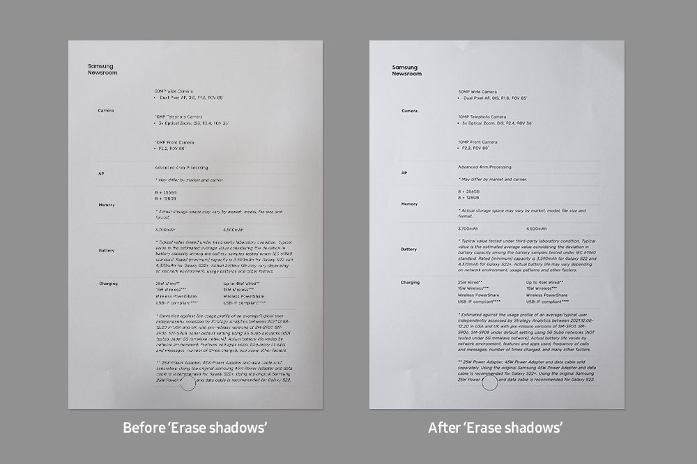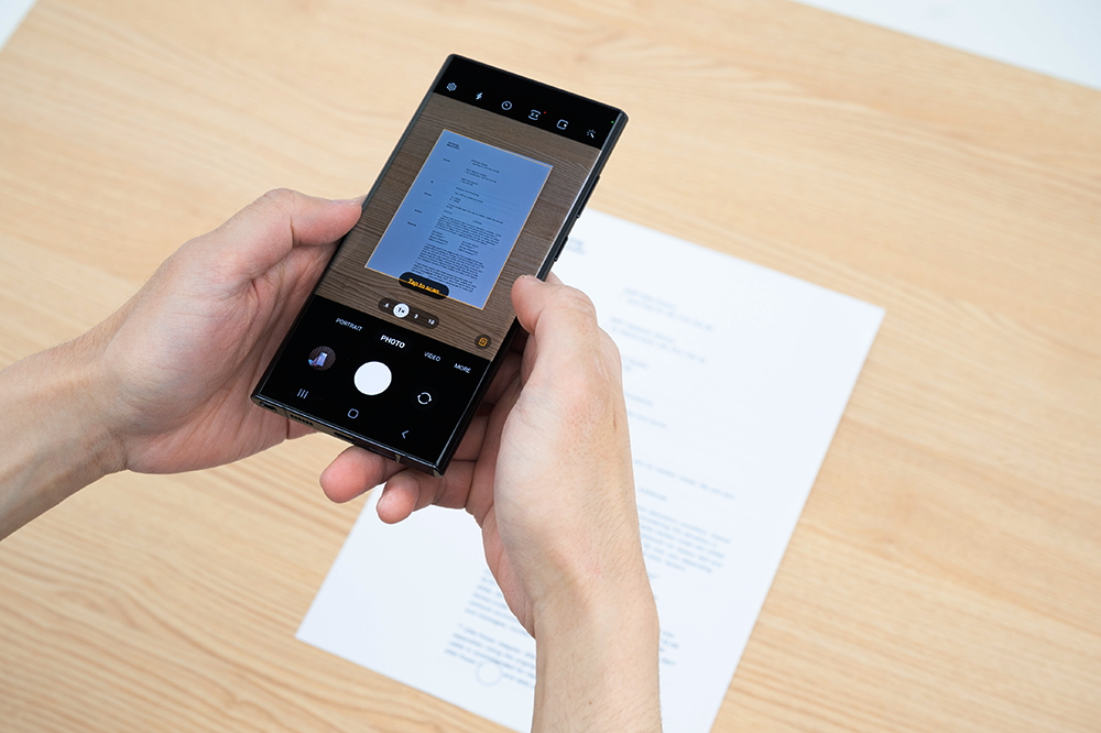 Kiedy otrzymujemy pilne prośby o dokumenty, często łatwiej jest zrobić zdjęcie, niż męczyć się ze skanerem. Ale kiedy próbujesz zrobić idealne ujęcie papieru na biurku, trudno jest uniknąć rzucania cienia na dokument, bez względu na to, jak ustawisz smartfon. Gumka Object z serii Galaxy S22 jest po to, aby Ci pomóc.