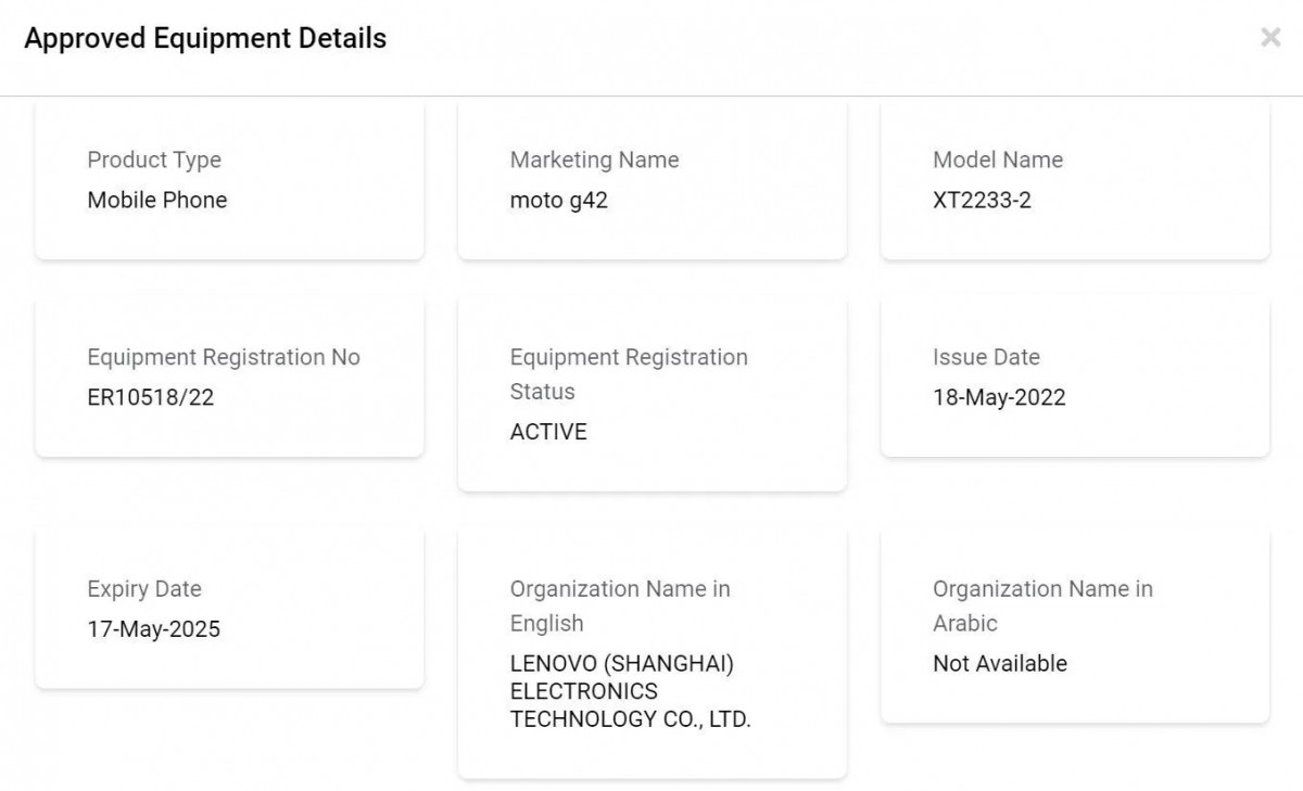 Powierzchnia renderów i certyfikatów Motorola Moto G42