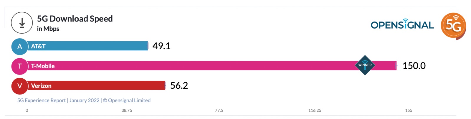 Wyniki Opensignal pokazują średnie prędkości pobierania 5G w Stanach Zjednoczonych w pierwszym kwartale 2022 roku.