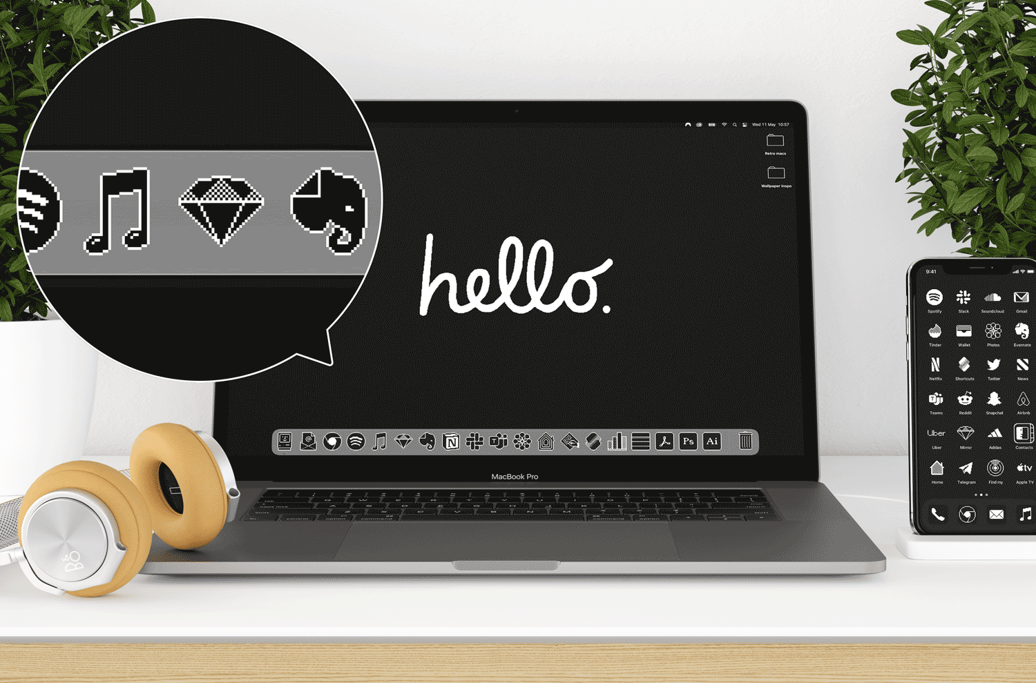 Ten zestaw tapet i ikon od Bena Vesseya nada Twojemu najnowocześniejszemu MacBookowi/iMacowi wygląd retro. W 2021 r. Vessey stworzył podobny zestaw ikon dla iPhone'a, który wykorzystał obejście „Skróty” firmy Apple, aby umożliwić tworzenie spersonalizowanych skrótów do operacji na telefonie. System operacyjny rozszerza ten sam klasyczny urok także na komputery Mac, z oryginalną tapetą „hello” z Maca z 1984 r. oraz pakietem 166 pasujących klasycznych ikon dla wszystkich popularnych programów i aplikacji.