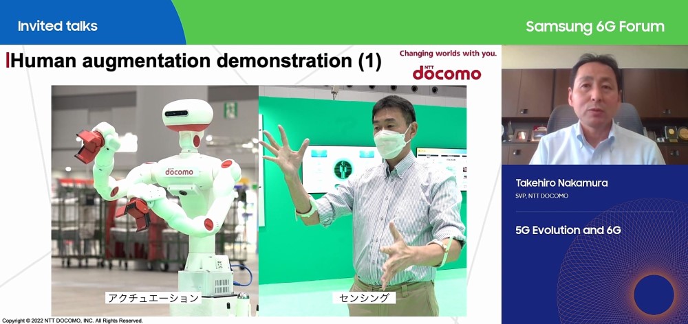 Drugie wystąpienie eksperckie wygłosił Takehiro Nakamura, starszy wiceprezes i dyrektor generalny w NTT DOCOMO pod tytułem „5G Evolution and 6G”. Oprócz omówienia globalnego wzrostu zaobserwowanego ostatnio w badaniach nad 5G i 6G, SVP Nakamura wyraził swoją opinię na temat poprawy wydajności w przypadku innowacyjnej technologii sieci optycznych i bezprzewodowych (IOWN) stosowanej w komunikacji 5G i 6G. „Sieci 6G mogą działać jak ludzkie nerwy” — wyszczególnił SVP Nakamura dotyczący potencjału technologii IOWN zastosowanych w 6G. „Mogą zwiększać i rozszerzać ludzkie możliwości. Jeśli możemy dzielić się ruchem ciała, pięcioma zmysłami i emocjami za pośrednictwem sieci 6G, możemy realizować bardzo interesujące i ekscytujące nowe usługi, które zostały opisane jako science fiction”.