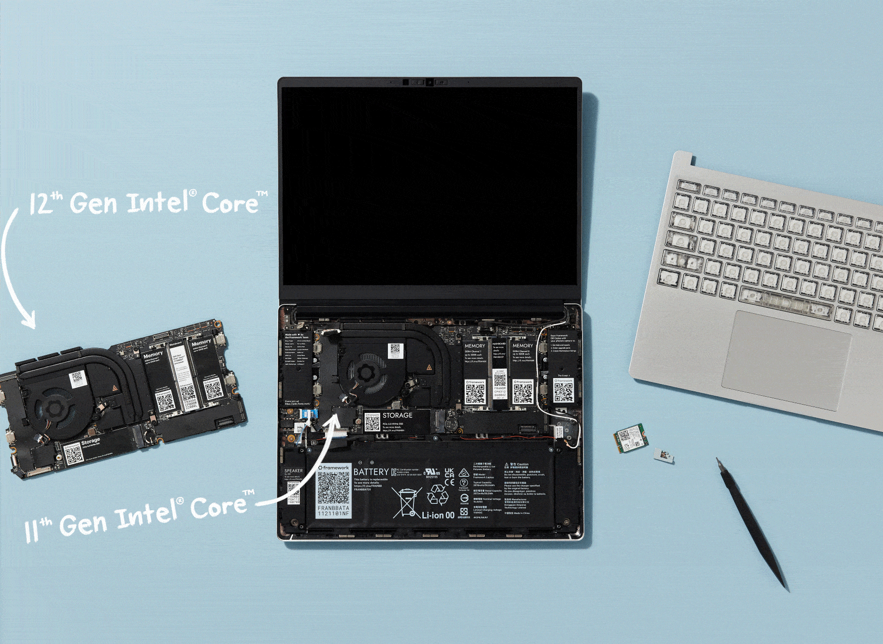 Posiadacze istniejących modeli Intel Core 11. generacji mogą uaktualnić do najnowszego procesora Intel, po prostu kupując nową płytę główną. Jeśli jednak nie są zadowoleni z nieco wątłej górnej pokrywy zeszłorocznego laptopa Framework, mogą ulepszyć tylko to lub ulepszyć oba jednocześnie, kupując zestaw Upgrade Kit. Ci, którzy nigdy nie posiadali laptopa z ramą, mają możliwość zakupu gotowej maszyny lub zestawu do samodzielnego montażu, który pozwala kupującemu wybrać dokładnie te moduły, które chcą, i zainstalować własny system operacyjny.