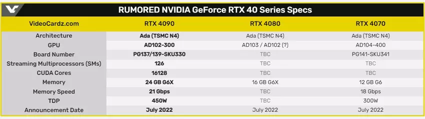 RTX 3080 była pierwszą kartą, która została wprowadzona na rynek zaledwie dwa tygodnie po ogłoszeniu, a RTX 3090 kolejne dwa tygodnie później. RTX 3070 został wprowadzony na rynek dwa miesiące po ogłoszeniu tej karty. Wszystkie podobno karty graficzne RTX 40 oparte na architekturze Ada używają różnych procesorów graficznych. NVIDIA podobno skoncentrowała swoje wysiłki na GPU AD102, a AD104 wkrótce wejdzie w fazę testów. Ten procesor graficzny będzie używany przez procesor graficzny RTX 4070, według tego samego informatora. Jednak nie słyszeliśmy jeszcze nic o wejściu AD103 w fazę testów, w rzeczywistości Kopite bardzo niechętnie potwierdzał jakiekolwiek nowe informacje dotyczące tego GPU. Można więc założyć, że NVIDIA wybierze dla tego modelu procesor graficzny AD102.