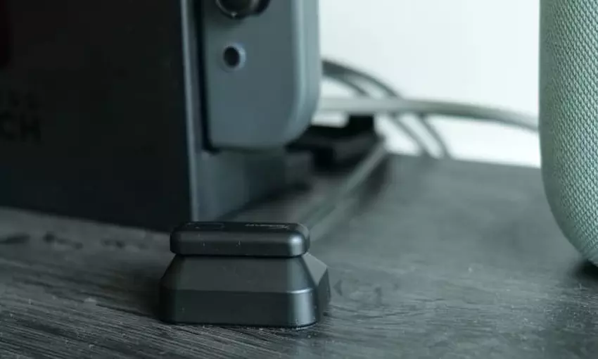 Przenosząc klucz sprzętowy z jednego urządzenia na drugie, możesz łatwo przekonwertować dźwięk bezprzewodowy. Z mojego doświadczenia wynika, że korzystanie z dwutrybowego połączenia bezprzewodowego pączków poprzez sparowanie ich z moim telefonem przez Bluetooth (gdzie opóźnienie nie jest tak znaczącym problemem) i podłączenie klucza sprzętowego do tego, na czym aktualnie gram, jest najlepszy sposób na jego wykorzystanie. Adapter USB-C ma nawet poręczny przycisk, który wycisza jego mikrofony po naciśnięciu.