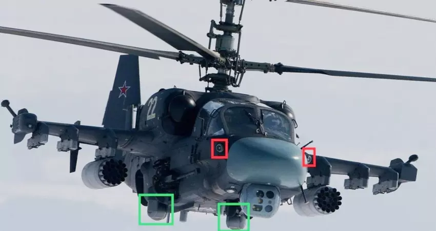 Rosyjski śmigłowiec Ka-52 z osłoną przeciwrakietową przegrał z ukraińską choinką, która uszkodziła jej kompleks obronny i blok startowy