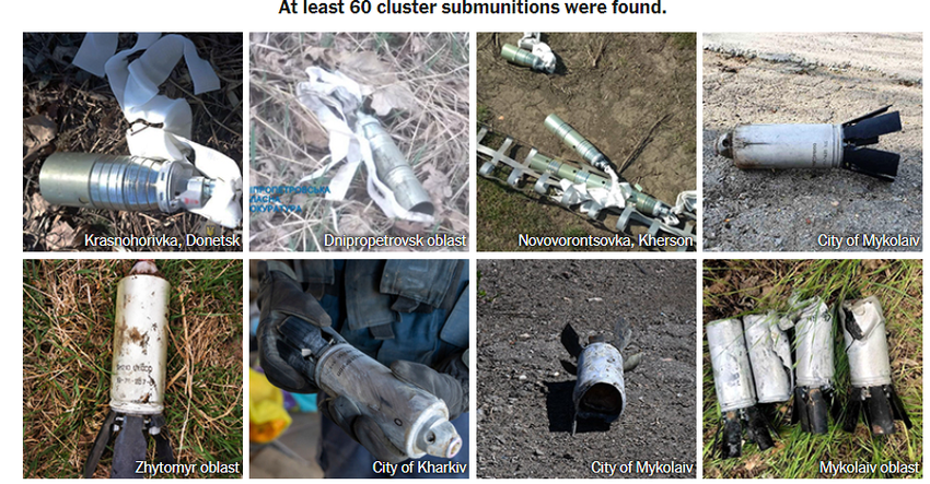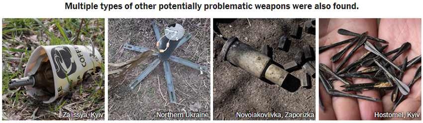 W artykule New York Times Wymieniono amunicję do metalowych gwoździ i amunicję fosforową. Autorzy materiału uważają, że największym zagrożeniem dla ludności cywilnej są niewybuchy, które mogą pozostawać w ziemi przez dziesięciolecia.