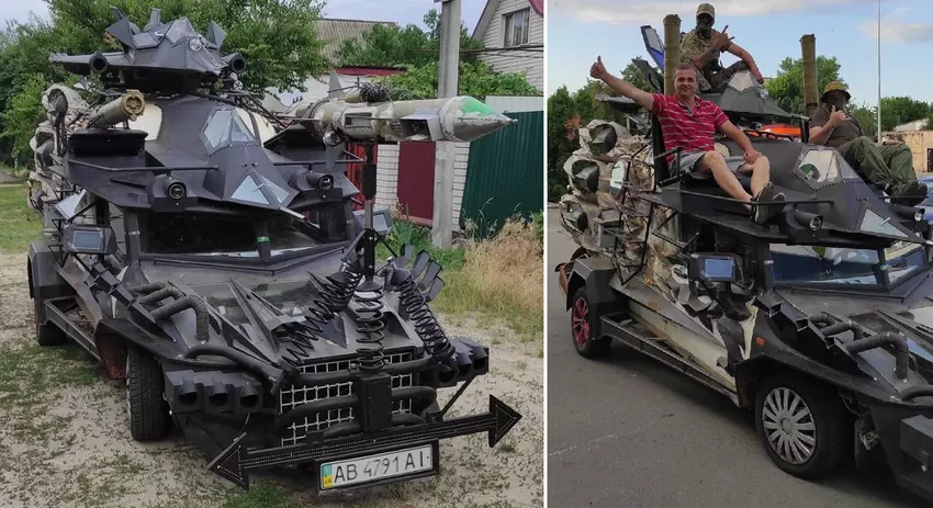 Kierowca opracował samochód „bojowy” o oryginalnym designie. Pojazd jest wyposażony w kilka dział, rakietę, a na dachu jednocześnie zainstalowane są dwa „samoloty stealth”. Lockheed F-117 Nighthawk. Oczywiście oba są fałszywe. Cudowny transport został wykonany pod wpływem wojny, aby promować zwycięstwo Ukrainy nad rosyjskim okupantem.