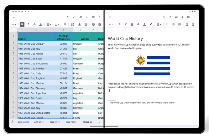Dokumenty, Arkusze i Dysk Google są aktualizowane, aby umożliwić przeciąganie i upuszczanie między aplikacjami, co pozwala łatwo przenosić takie elementy, jak tekst i obrazy z jednego programu do drugiego. Tymczasem Drive będzie mógł otwierać dwa pliki obok siebie w podobny sposób, jak aktualizacja iPada z 2019 roku na iPada, co daje mu taką możliwość. Skróty klawiszowe będą wkrótce dostępne dla Dysku, Dokumentów i Prezentacji na tabletach z Androidem z podłączonymi klawiaturami Bluetooth lub przewodowymi. powinny znacznie ułatwić korzystanie z nich.