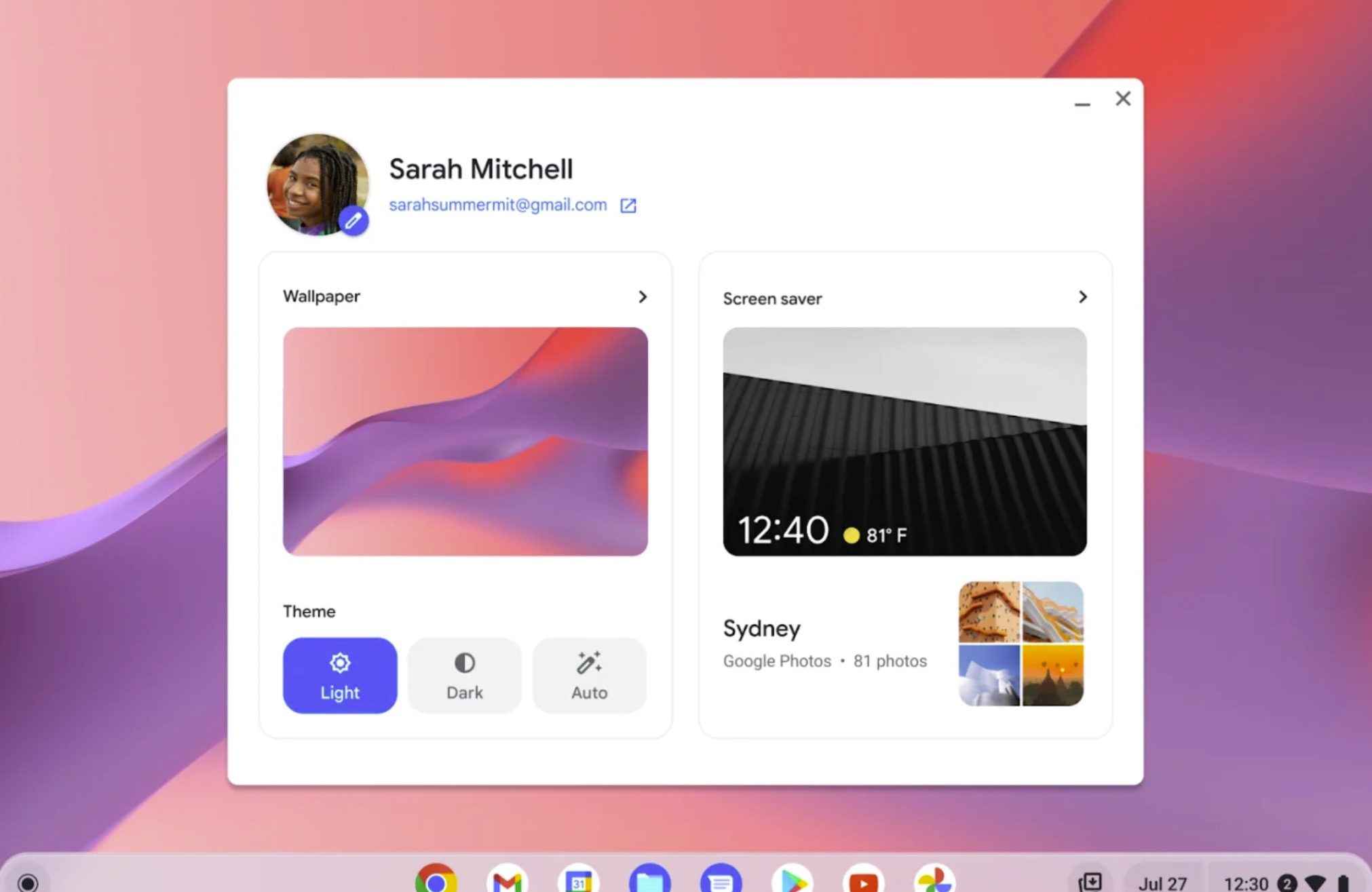 W systemie operacyjnym Chrome pojawia się także tryb ciemny, co było wyczekiwane od dawna. Będziesz mógł wybrać jeden styl lub ustawić go automatycznie w zależności od pory dnia, tak jak na większości innych urządzeń. Pojawią się również jasne i ciemne wersje niektórych nowych tapet, które zmieniają tryby w zależności od używanego motywu.