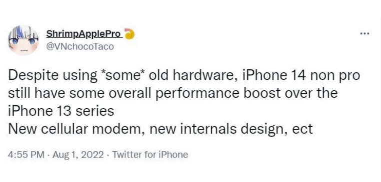 Ważniejszym wnioskiem jest to, że iPhone 14 i 14 Max przewyższają swoje odpowiedniki z 2021 r., mimo że używają przestarzałego sprzętu. ShrimpApplePro jako pierwszy wspomniał o plotkach o nowym projekcie panelu przedniego Apple dla profesjonalistów pod koniec zeszłego roku, co doprowadziło do tej sensacji. Twierdzą, że pewne modyfikacje, takie jak nowy modem i wewnętrzna struktura, poprawią wydajność standardowych modeli iPhone’a 14 w porównaniu do poprzednich wersji.