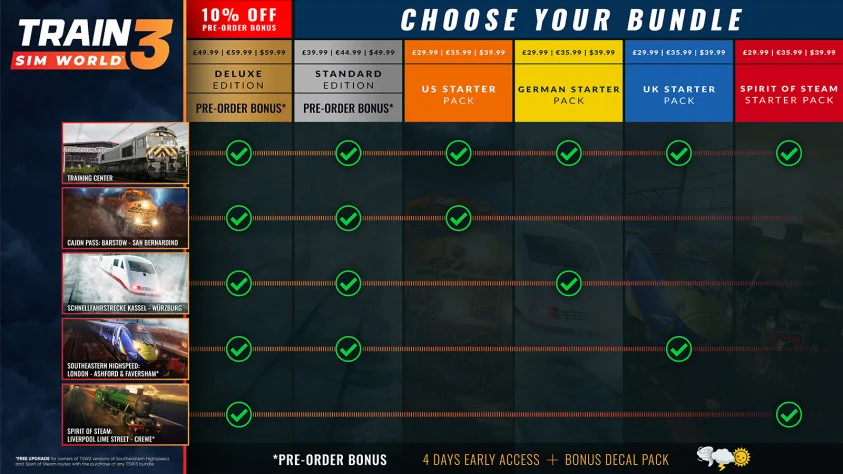Zamówienia w przedsprzedaży są już dostępne. Jeśli chodzi o projekt, obiecują wydać grę cztery dni wcześniej, a także dają zestaw naklejek do edytora kolorowania. Standardowa edycja gry zawiera utwory w USA, Wielkiej Brytanii i Niemczech. Wersja rozszerzona oferuje przejazd pociągiem z Liverpoolu do Crewe.