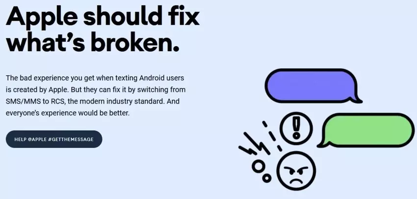 Problemy opisywane przez Google są najbardziej znane większości osób w postaci zielonych bąbelków w aplikacji Apple Messages, które wskazują powiadomienia użytkownika Androida. Podczas wysyłania wiadomości tekstowych do użytkownika Androida aplikacja na iPhone'a korzysta z własnej usługi iMessage firmy Apple (która obejmuje nowoczesne funkcje, takie jak szyfrowanie, czaty grupowe oraz wysokiej jakości transmisja obrazu i wideo), ale zamiast tego wracają do zwykłych wiadomości SMS i MMS. Wiadomości te są nie tylko wyświetlane w jasnozielonych kółkach, ale także naruszają kilka nowoczesnych standardów przesyłania wiadomości, na których ludzie polegają.