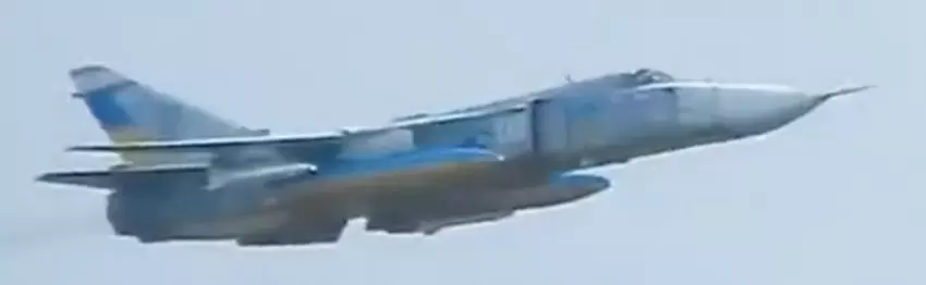 Na ogonie Su-24M widać niebiesko-żółte paski w stylu flagi Ukrainy. Sugeruje to, że mamy do czynienia konkretnie z samolotami ukraińskimi, ponieważ bombowiec frontowy służy również armii rosyjskiej.