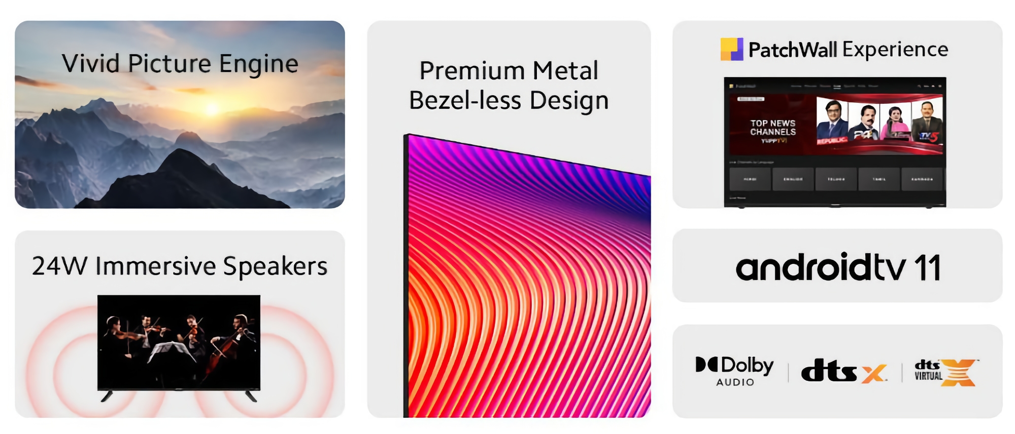 Urządzenie zostało wyposażone w 32-calowy DOPROWADZIŁO-panel z rozdzielczością HD, kątem widzenia 178 stopni i obsługą technologii ALLM (Auto Low Latency Modem) i szeroka gama kolorów Vivid Picture Engine. Telewizor napędza czterordzeniowy procesor Cortex A55 z grafiką Mali G31 MP2 i 1,5 GB pamięci RAM. Wbudowana pamięć w nowej 8 GB. Telewizor otrzymał Wi-Fi 802.11 ac (2,4 + 5 GHz), Bluetooth 5.0 i 2 HDMI, 2 USB, Ethernet, AV oraz gniazdo 3,5 mm. Za dźwięk w urządzeniu odpowiadają głośniki o mocy 24 W. Obsługują Dolby Audio, DTS:X | DTS Virtual: X i Dolby Atmos. Telewizor jest wyposażony w system operacyjny Android TV 11 i zastrzeżoną powłokę PatchWall.