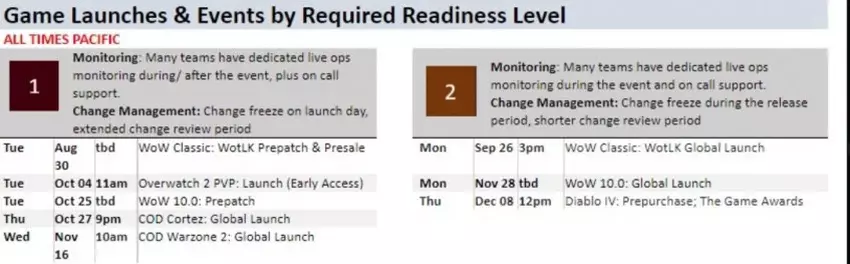 Użytkownik Reddita z nickiem @klasycznywow wspólne interesujące zrzut ekranu. Pokazuje daty premier i wydarzenia dla różnych gier, w tym Diablo IV. Według przecieku zamówienia w przedsprzedaży gry powinny zostać otwarte podczas corocznej imprezy The Game Awards w grudniu.
