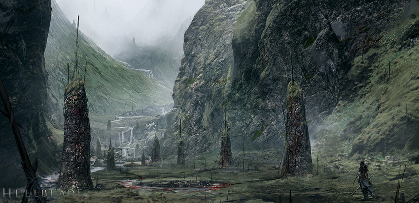 Deweloperem zajęło się wówczas niewielkie studio Ninja Theory, które stworzyło grę na własny koszt. Studio przywiązywało dużą wagę do badania mitologii skandynawskiej i jej postaci. Deweloperzy stale odwiedzali tematyczne muzea i miejsca, dzieląc się między sobą wrażeniami. Pomogło to w stworzeniu pierwszej grafiki koncepcyjnej i wyznaczeniu ścieżki rozwoju. Świat gry zaczął być tworzony bez odniesienia do rozgrywki. Pozwoliło to artystom nie polegać na drugiej części zespołu, ale od razu zacząć tworzyć niepowtarzalny skandynawski świat.