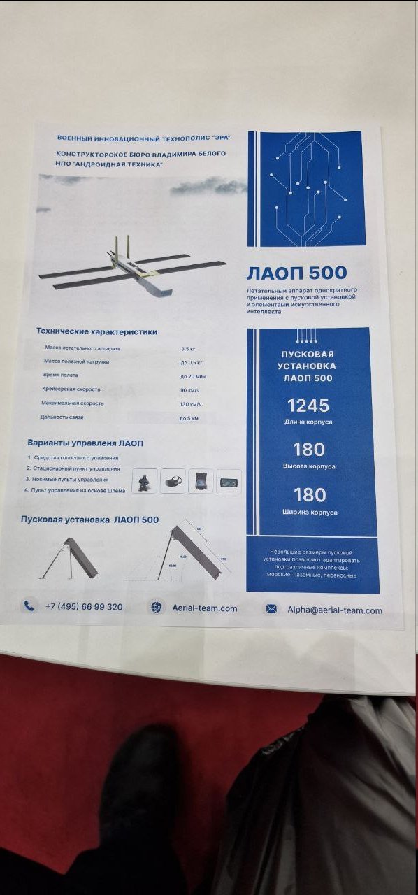 Ogłoszenie drona samobójcy miało miejsce na forum Army-2022, które zakończyło się w zeszłym tygodniu. LAOP 500 to samolot jednorazowego użytku z wyrzutnią i obsługą algorytmów sztucznej inteligencji.