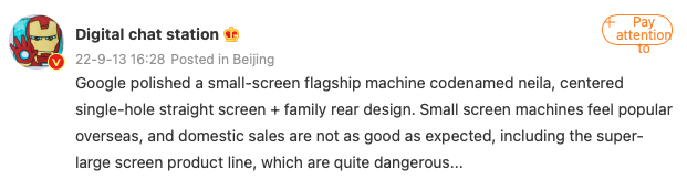 Nie mówimy tu o Pixel 7 i Pixel 7 Pro, ale o innym urządzeniu o kompaktowych wymiarach i topowej specyfikacji. Nowość idzie pod kryptonimem Neila. Smartfon będzie wyglądał podobnie jak Pixel 6 i Pixel 7. Otrzyma on wyświetlacz z otworem na przednią kamerę na środku.