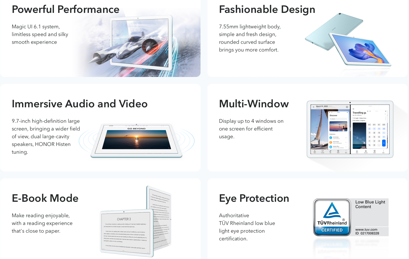 Tablet został nazwany Honor Pad X8 Lite i zdaje się być przemianowaną wersją tabletu Honor Tab 7, który debiutował w Chinach rok temu. Urządzenie dostanie 9,7-calowy wyświetlacz LCD o rozdzielczości 1280×800p, procesor MediaTek Helio P22T oraz 32GB pamięci wewnętrznej. Producent nie ujawnił ilości pamięci RAM. Tablet wyposażony jest w dwie kamery: przednią 2 MP i główną 5 MP. Urządzenie pracuje na przestarzałym systemie operacyjnym Android 10. Na wierzchu zainstalował autorską powłokę Magic UI 6.1. Gadżet zasilany jest przez baterię o pojemności 5100 mAh. Nowość ma Bluetooth 5.1 i Wi-Fi 802.11 a/b/g/n/ac. Ładowanie tabletu odbywa się poprzez port micro USB.