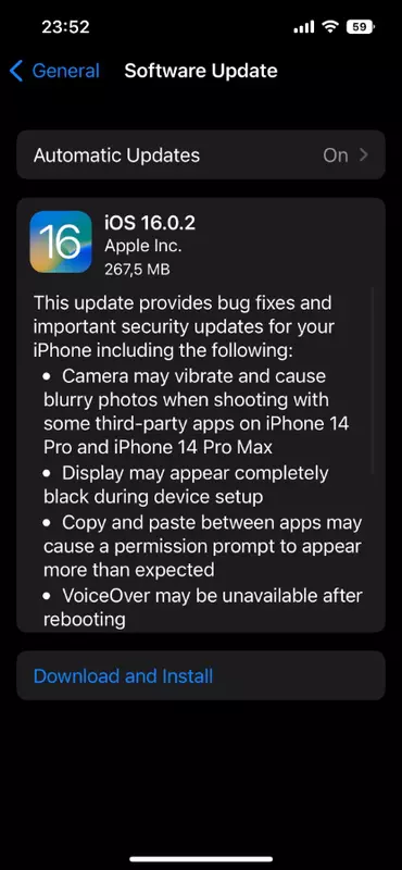 Firmware został wydany z numerem builda iOS 16.0.2 i waży ponad 200MB. System został dopracowany pod kątem błędów. Na przykład programiści naprawili problem trzęsącej się kamery w iPhone 14 Pro i iPhone 14 Pro Max. Naprawili również problemy z wyświetlaniem w niektórych modelach iPhone'a X, iPhone'a XR i iPhone'a 11 oraz naprawili problemy z Kopiuj i wklej oraz VoiceOver.