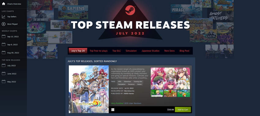Jak podaje Valve: od ponad roku zestawiają listy najlepszych premier w danym miesiącu. Teraz można je znaleźć w tym samym miejscu, co pozostałe listy, więc przeglądanie list za poprzednie miesiące będzie jeszcze łatwiejsze.