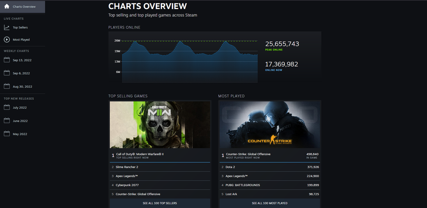 Valve uruchomiło nowe listy Steam, na których można poznać ocenę najpopularniejszych gier na platformie. Teraz są listy w czasie rzeczywistym z hitami i najpopularniejszymi grami na tydzień, miesiąc, po wsze czasy. A także ranking sprzedaży gier i najbardziej udane premiery miesiąca.