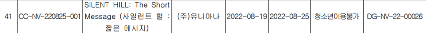 Jak podaje Gametsu, niezapowiedziana gra Silent Hill:The Short Message została oceniona w Korei Południowej. Platformy i data premiery nie zostały określone.