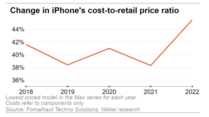 Koszty produkcji Apple wzrosły od razu o 60 dolarów w porównaniu z iPhone'em 13 Pro Max. Tym samym iPhone 14 Pro Max stał się najdroższym smartfonem w historii serii. To powiedziawszy, Nikkei zauważa, że koszty komponentów dla modeli premium wahają się między 400 a 450 dolarów od 2018 roku.
