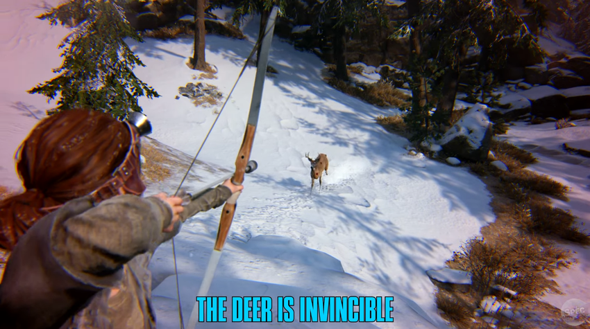 Aby to sprawdzić, autor użył kilkudziesięciu wybuchowych strzał, ale, kto by pomyślał, jeleń jest nieśmiertelny, a jego śmierć następuje dopiero w kluczowym momencie gry.
