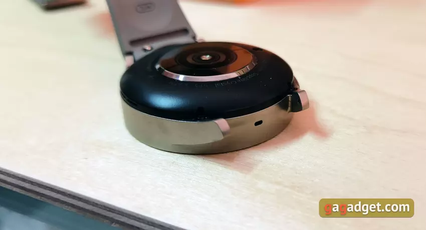 W górnej części Samsunga Galaxy Watch5 Pro i Watch5 obok mocowania paska znajduje się otwór na czujnik ciśnienia atmosferycznego.