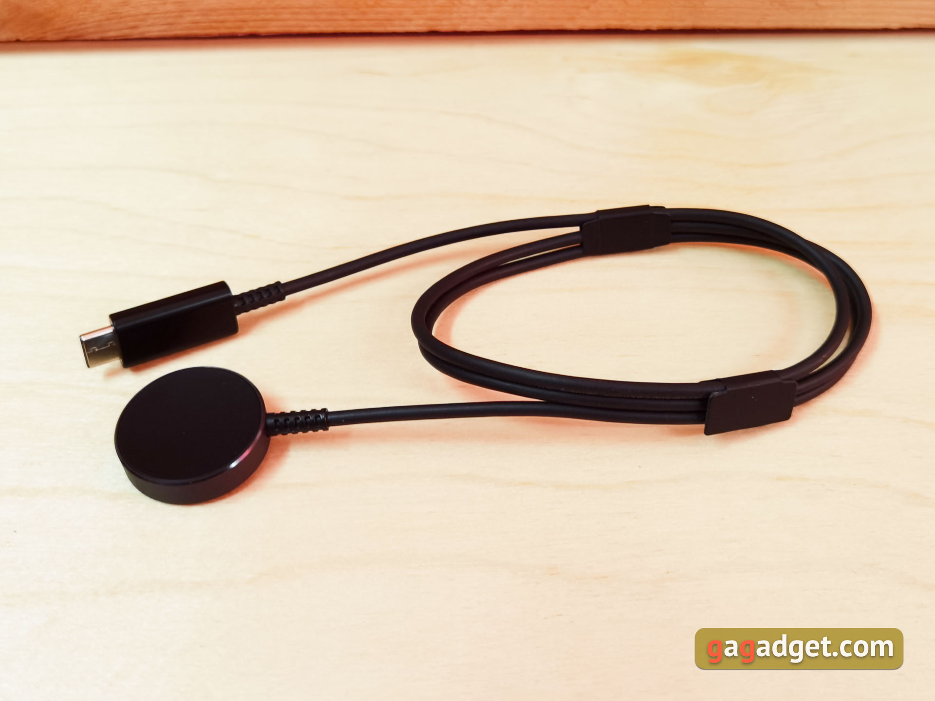 Opakowanie i wyposażenie Samsunga Galaxy Watch5 Pro i linii Watch5 są podobne do poprzednich modeli. Długie prostokątne pudełko ze zdjęciem zegarka i kilkoma informacjami technicznymi. Starszy model otrzymał czarne pudełko, młodszy - w białym. W środku znajduje się zegarek z paskiem, ładowarką i dokumentacją. Konstrukcja ładowarki nie uległa zmianie. Jest to rodzaj magnetycznego "krążka" z niewymiennym kablem zakończonym złączem Type-C. Jednak w modelu Pro ta "podkładka" jest metalowa, jedynie część, która dotyka zegarka podczas ładowania jest wykonana z tworzywa sztucznego.