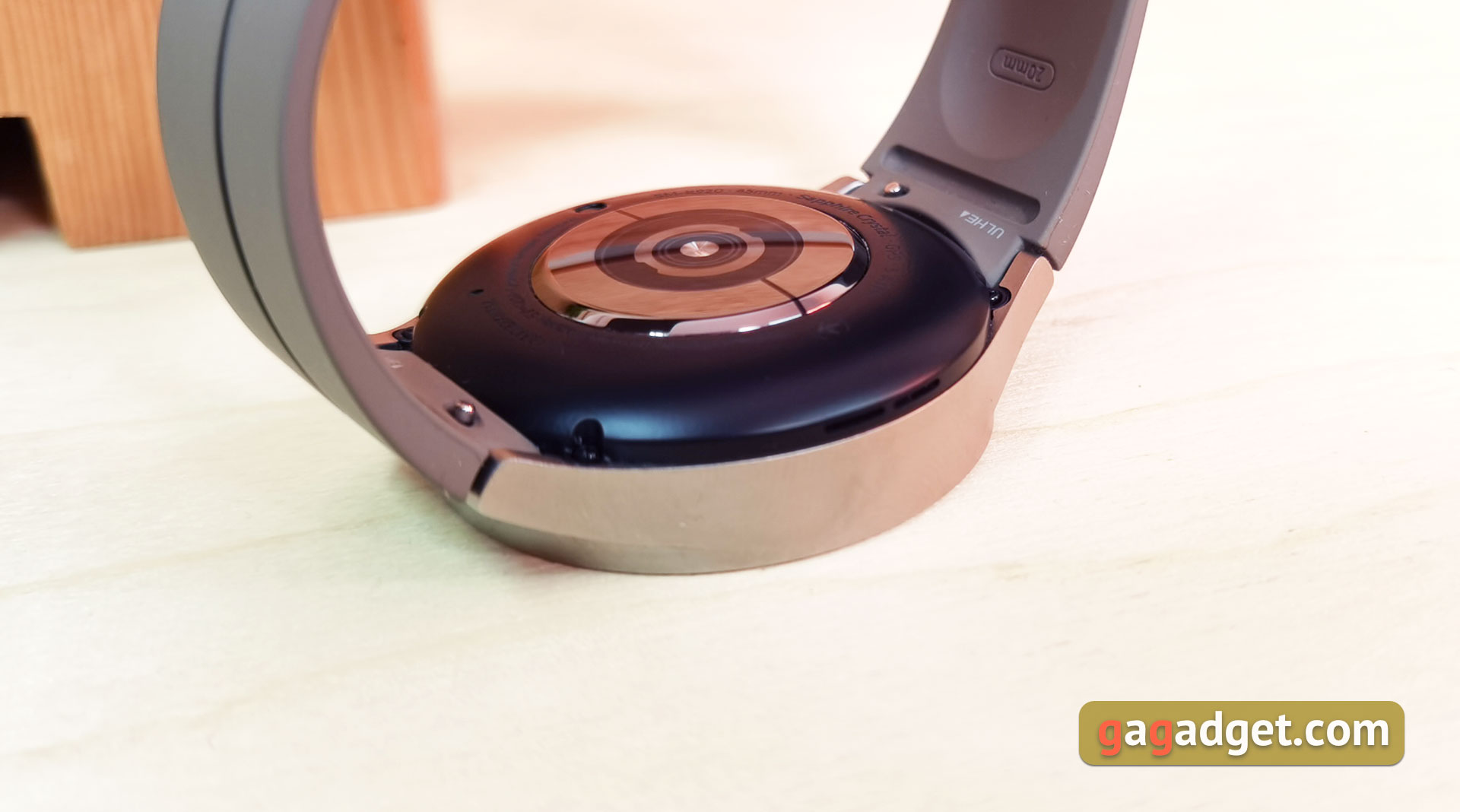 Na tylnej ściance zegarka znajduje się całkiem sporo. W poprzedniej generacji wszystko było wykonane ze szkła i ceramiki. Teraz główna część jest plastikowa, a jedynie elektrody czujników są szklane. A jest ich bardzo dużo. Biosensory Samsung BioActive, optyczny czujnik tętna i czujnik temperatury na podczerwień. W linii Galaxy Watch5 nie ma funkcji bezpośredniego pomiaru temperatury (przynajmniej na razie), a czujnik jest wykorzystywany w kompleksowym śledzeniu kondycji ciała. Dodatkowo z tyłu znajduje się otwór do odciążenia.