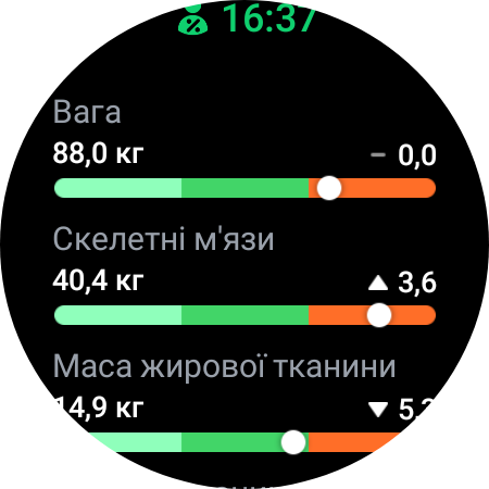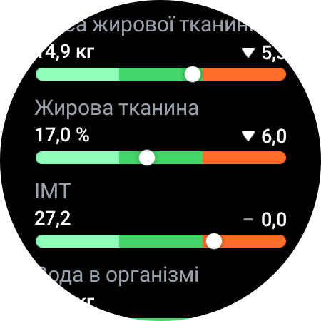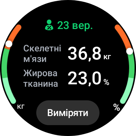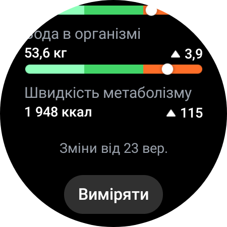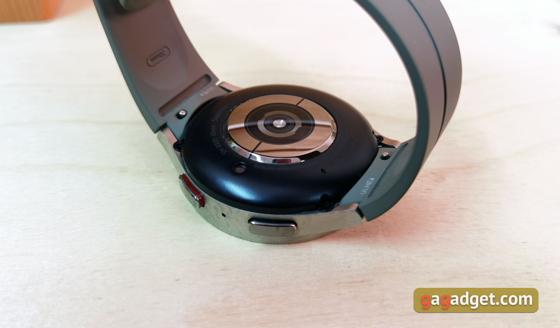 Funkcja analizy budowy ciała na podstawie bioimpedancji pozostała z ostatniej generacji Galaxy Watch. Zegarek może określić procentową zawartość mięśni, płynów i tkanki tłuszczowej w organizmie poprzez wysłanie słabego prądu przez ciało. Najprościej mówiąc, jest to możliwe dzięki znanemu standardowemu procentowi płynu w różnych tkankach i ich różnym oporom. Oczywiście nie jest to urządzenie medyczne i nie należy oczekiwać idealnej dokładności, ale zegarek wyświetla przybliżony obraz. Aby dokonać pomiaru, należy zbliżyć zegarek do łokcia i dotknąć przycisków palcami środkowym i serdecznym. W tym przypadku ręce nie powinny się dotykać.