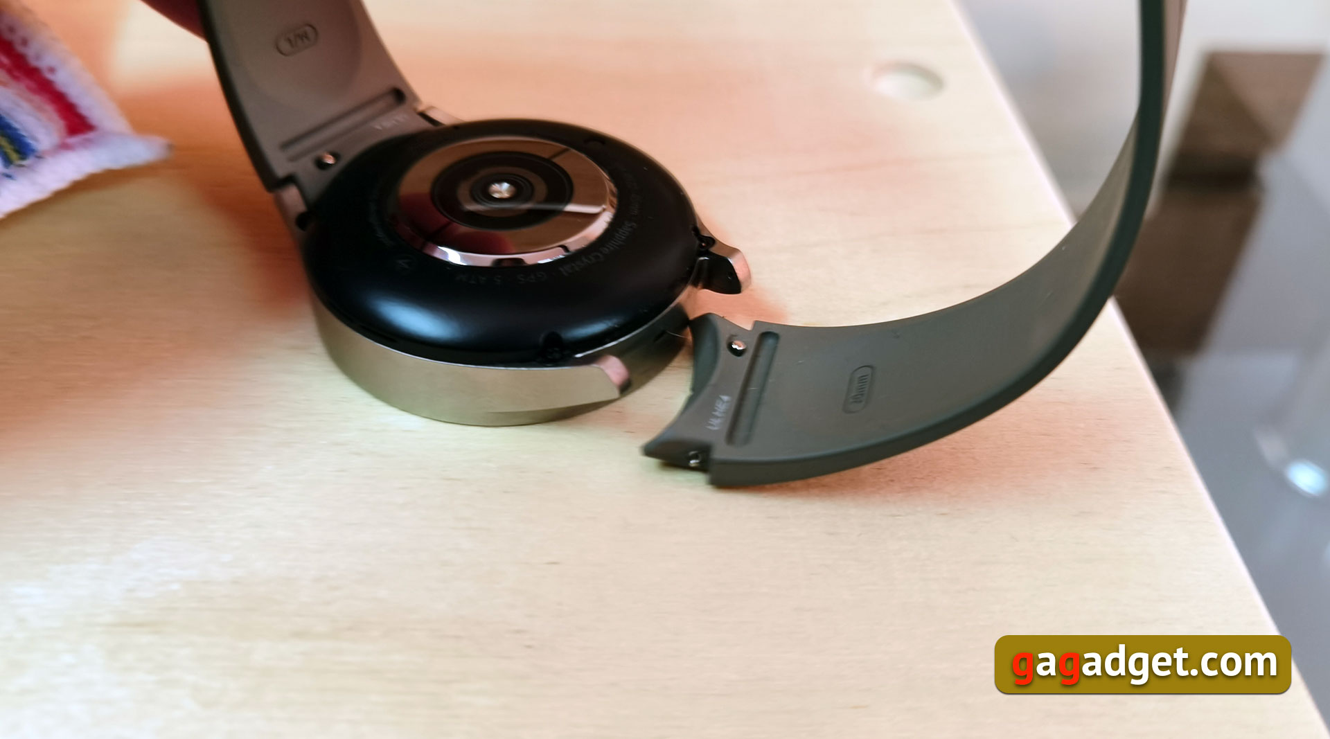 Pasek posiada mocowanie za pomocą sprężyny. Szerokość jest standardowa, 20 mm, więc można zastosować opcje innych producentów. Przyda się, jeśli ten dołączony do zestawu się zepsuje, albo po prostu będziesz chciał go wymienić na jakiś bardziej "egzotyczny".