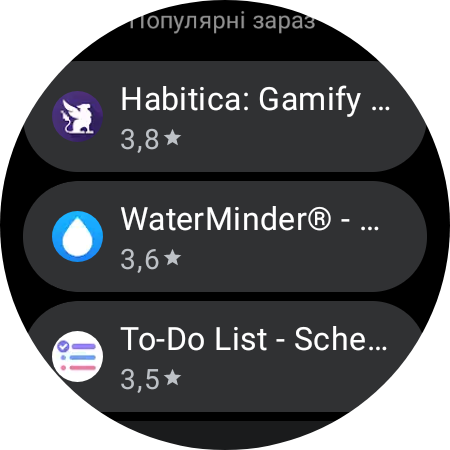 machnięcie w górę od dołu wyświetlacza odpowiada za wywołanie menu zainstalowanych aplikacji. Są one wyświetlane jako okrągłe ikony. Listę i kolejność można dostosować do własnych potrzeb. W Menedżerze możesz zamknąć wszystkie aplikacje lub tylko niektóre z nich. Aplikacje mogą być instalowane i aktualizowane zarówno bezpośrednio z zegarka, jak i ze smartfona. Niestety, od czasu recenzji Samsunga Galaxy Watch4 nie ma już aplikacji. Najczęściej są to aplikacje do biegania i uprawiania sportu. Wśród tych naprawdę przydatnych warto zainstalować Google Pay, Google Maps, Google Keep, Spotify, YouTube Music, Shazam, Calm, Viber, przeglądarkę Samsung, Strava, Bring itp.
