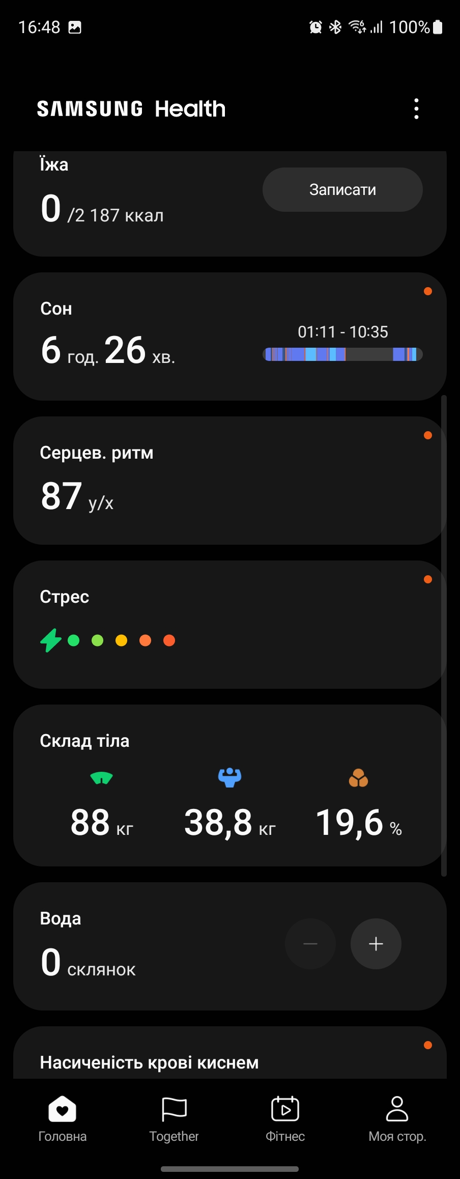 Wszystko co związane z treningiem i zdrowiem (poza EKG i ciśnieniem krwi) jest gromadzone w aplikacji Samsung Health (wcześniej nazywanej S Health). W nim można zobaczyć wszystkie swoje wskaźniki, ustawić cele sportowe i wiele więcej.