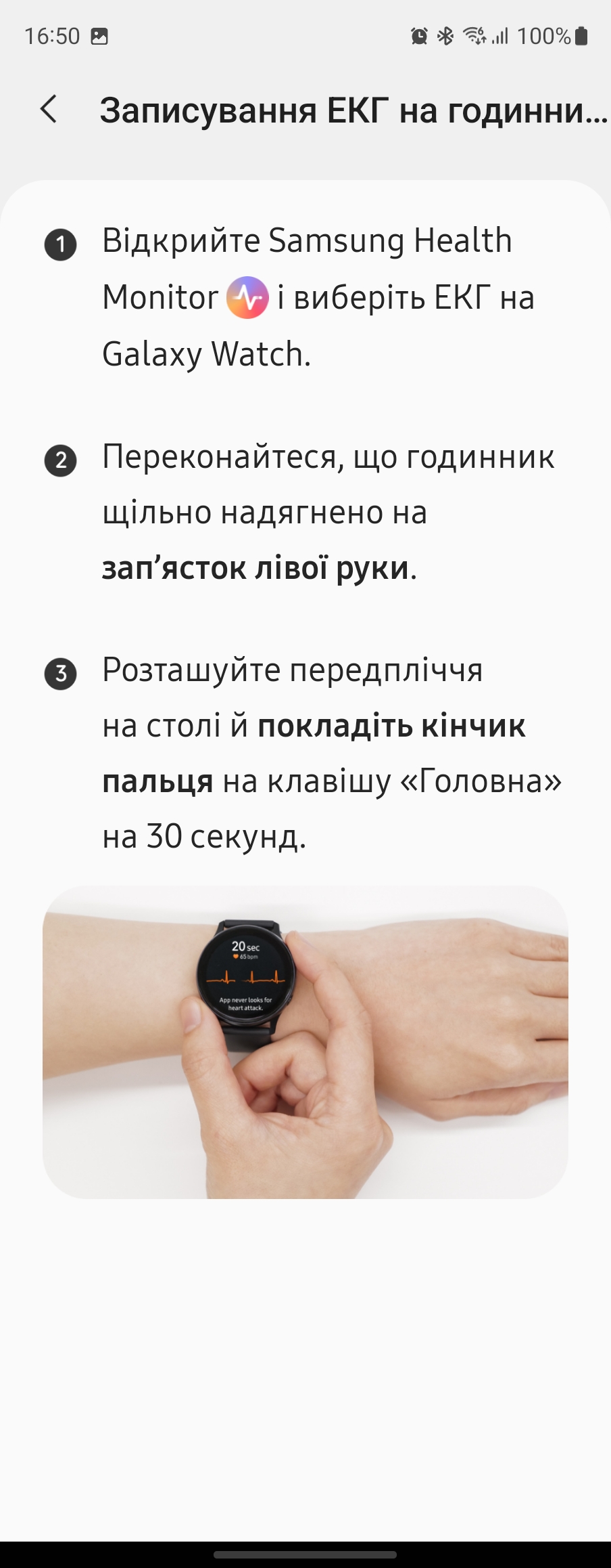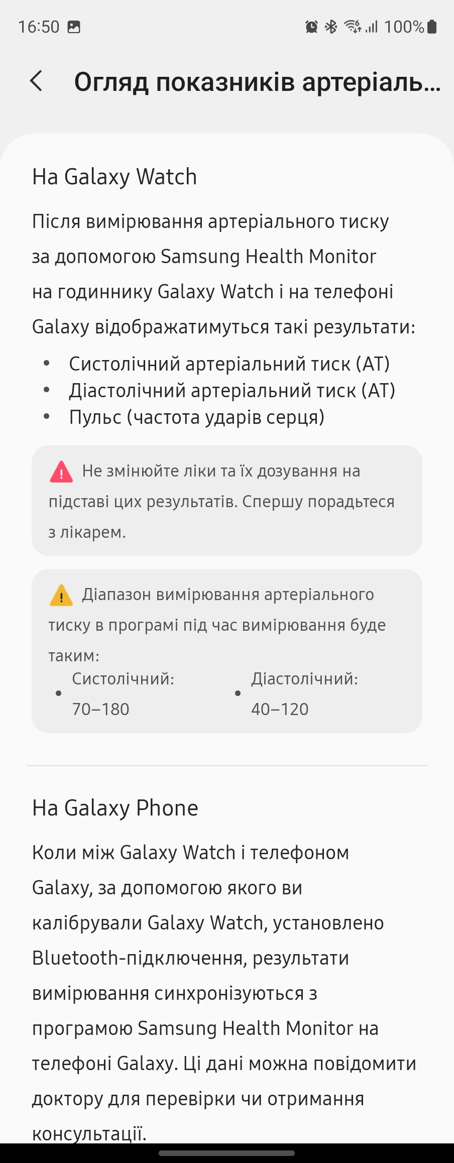 Do danych o EKG i ciśnieniu krwi służy osobna aplikacja Samsung Health Monitor, w której znajdują się objaśnienia i wskazówki dotyczące wyników pomiarów.