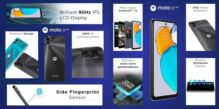 Nazywane Moto E22s, nowe urządzenie jest niemal całkowitą kopią Moto E32, która zadebiutowała wcześniej w tym miesiącu. Główną różnicą pomiędzy urządzeniem jest aparat fotograficzny. Zamiast modułów 50 MP + 2 MP, Moto E22s dostała 16 MP sensor + czujnik głębokości.