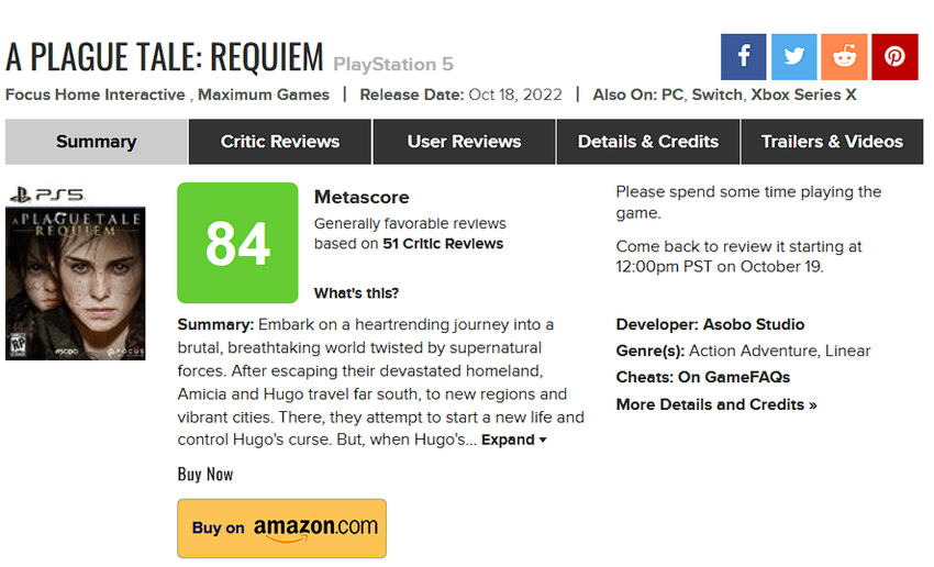 Pierwsze szacunki dotyczące A Plague Tale: Requiem. Gra jest chwalona za historię i oprawę wizualną, ale zwraca się uwagę na fatalną optymalizację i błędy