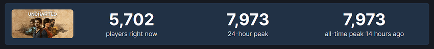 Według SteamDB, szczyt online przez 24 godziny nie osiągnął nawet 8 tysięcy. Na Steamie w Uncharted: Legacy of Thieves Collection zagrały tylko 7973 osoby. Dla porównania warto wziąć pod uwagę inne gry Sony, które pojawiły się na PC, oraz ich online w pierwszych dniach po premierze: