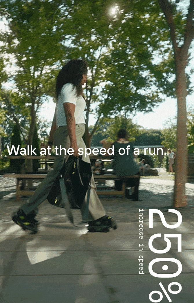 Każda jednostka posiada 300-watowy silnik elektryczny, który napędza zestaw ośmiu poliuretanowych kół. Czujniki monitorują chód użytkownika, a algorytmy automatycznie dostosowują moc silników do synchronizacji każdej stopy, dzięki czemu dodana prędkość wzrasta i maleje w miarę jak użytkownik idzie - szybciej lub wolniej.