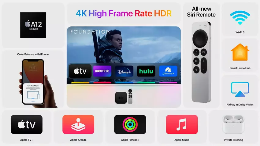 Do gadżetu dołączony jest Siri Remote (ładuje się przez port Lightning). Posiada touchpad ułatwiający sterowanie, przycisk zasilania oraz klawisz wyciszenia. Urządzenie obsługuje asystenta głosowego Siri, a także autorską usługę gier Arcade.