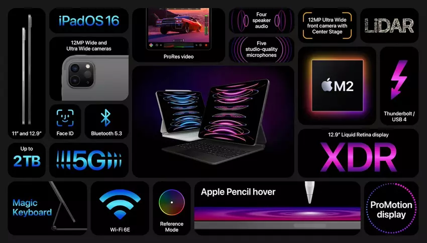 W urządzeniu pracuje nowy, autorski procesor M2. W tablecie zastosowano panel IPS. Gadżet obsługuje zastrzeżony przez Apple rysik Apple Pencil nowej generacji i ma podwójny aparat główny 12 MP + 10 MP, a także przednią kamerę 12 MP. Wyposażony jest w system operacyjny iPadOS 16.1.