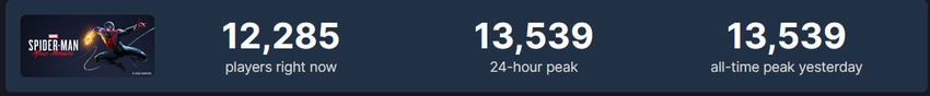 Według SteamDB, szczyt online przez 24 godziny nie osiągnął nawet 15 tysięcy. Na Steamie, Marvel's Spider-Man: W Milesa Moralesa wcieliło się 13 540 osób. Dla porównania warto wziąć pod uwagę Marvel's Spider-Man Remastered, które ukazało się na PC w sierpniu tego roku. W pierwszych dniach po premierze szczytowa gra online osiągnęła 66 tysięcy graczy.